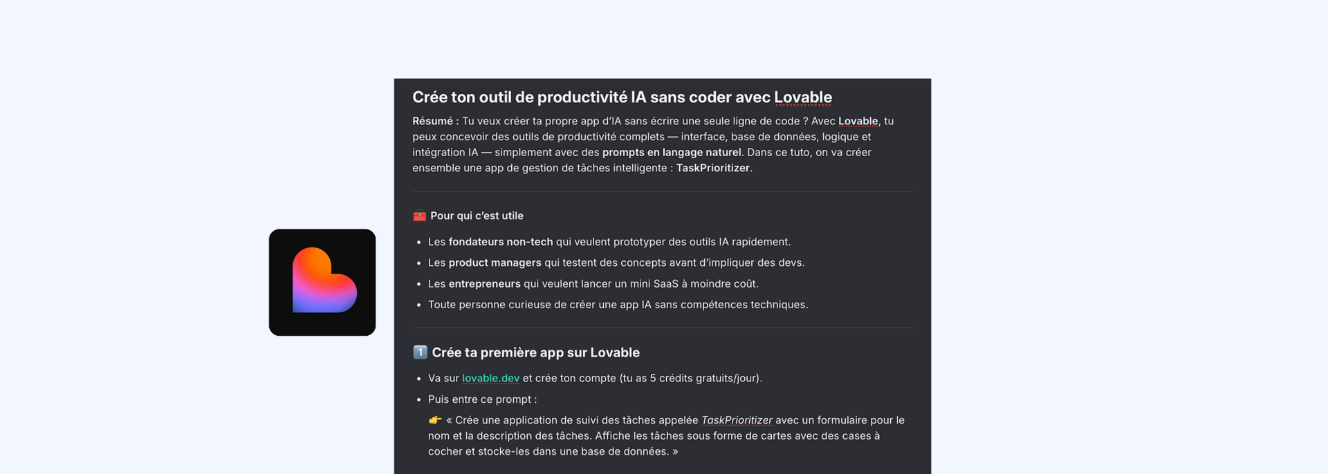 đ ïž CrĂ©e ton outil de productivitĂ© IA sans coder avec Lovable